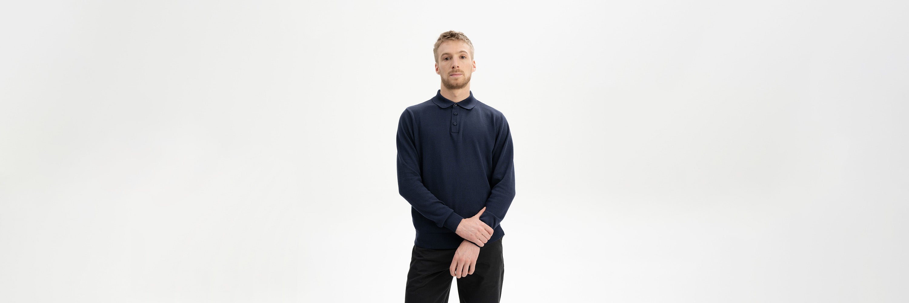 black Long-sleeved knit polo shirt, style HARISH