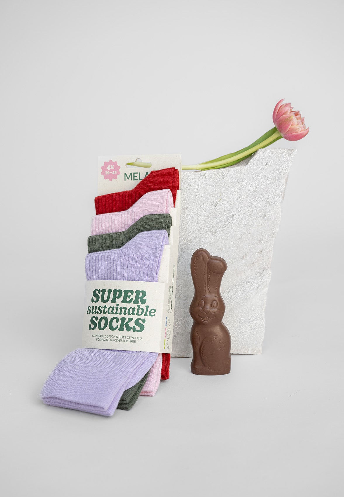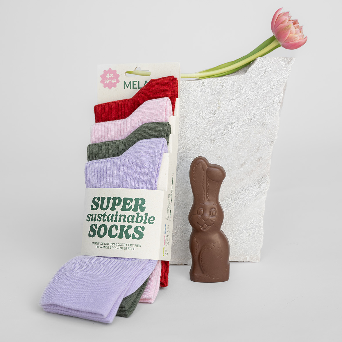 Our Super Sustainable Socks are the perfect Easter gift for anyone who values style, comfort and sustainability. Made from 97% organic cotton and certified by Fairtrade, GOTS and the Green Button, they are not only super soft, but also fairly produced and environmentally friendly. Whether as a colorful statement or a classic everyday companion - with our sustainable socks you give the gift of cozy comfort and a clear conscience at the same time. The perfect surprise for the Easter nest!