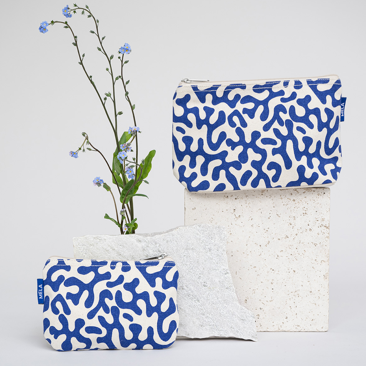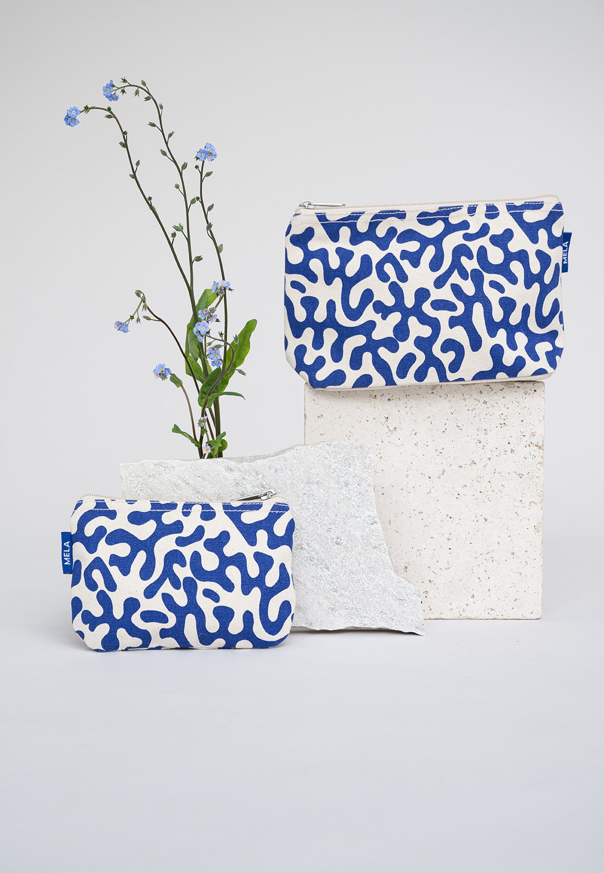 greige / blue coral print Small Pouch