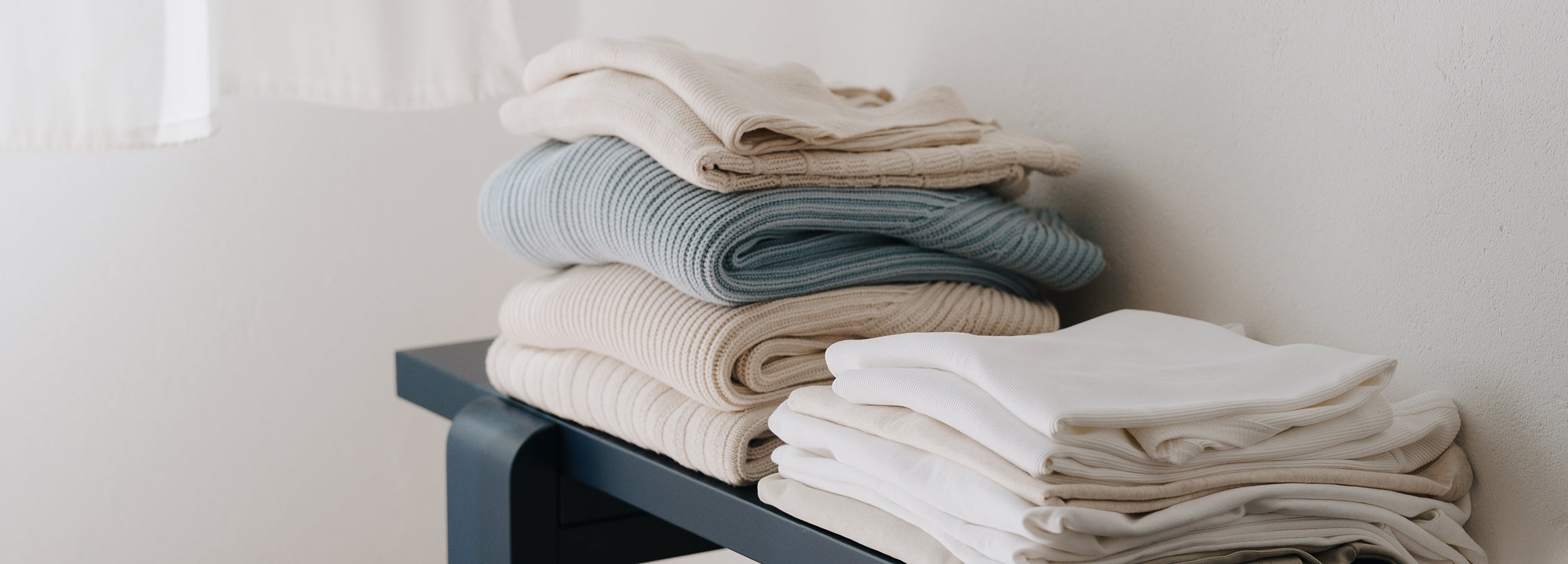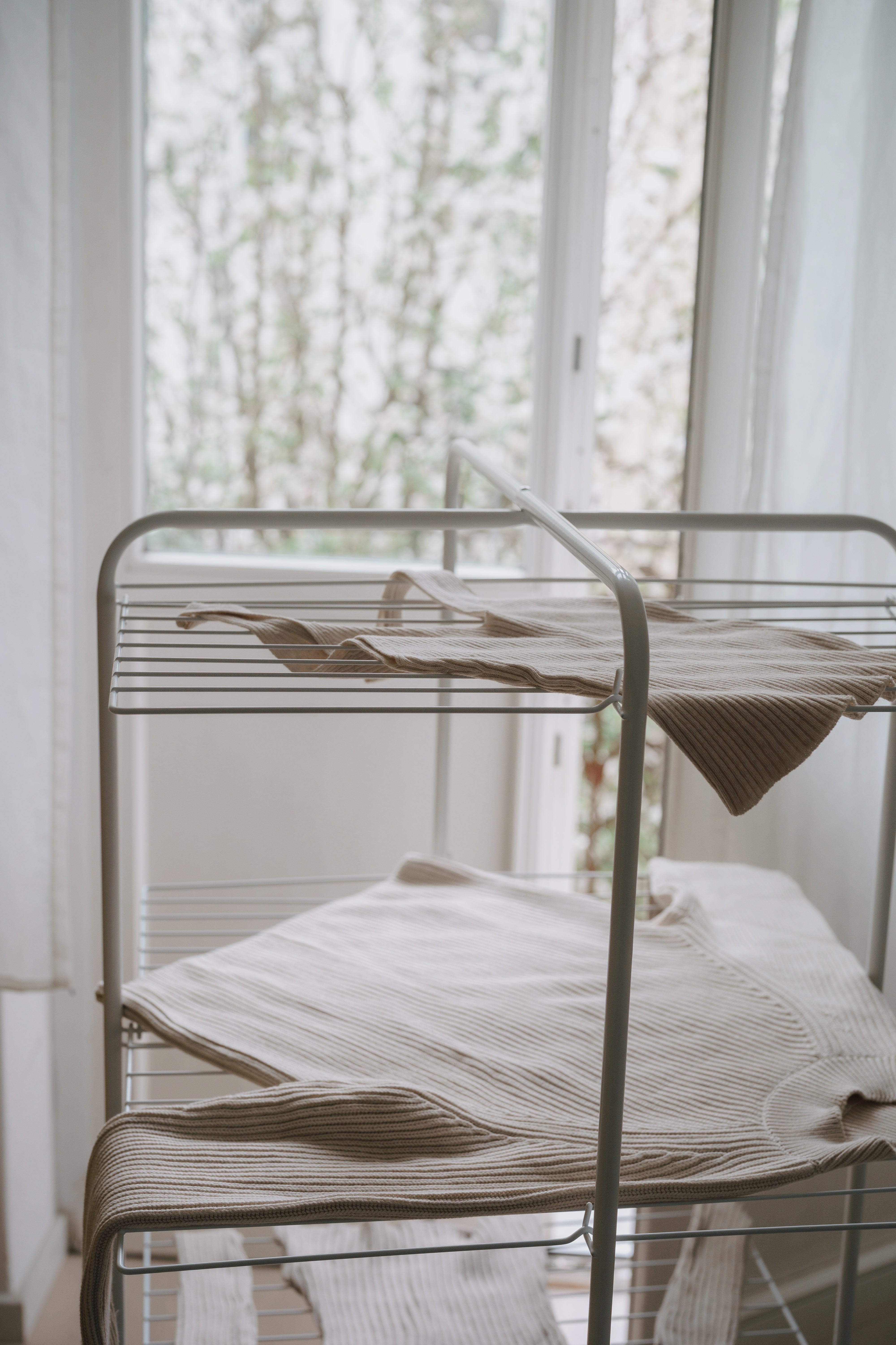 Tipp: Überschüssiges Wasser kannst du nach der Wäsche entfernen, indem du beispielsweise deinen Strickpullover auf ein sauberes Handtuch legst und vorsichtig darin einrollst. Bitte schüttle deine noch feuchten Strickprodukte nicht aus, sondern lege sie vorsichtig in Form und trockne sie liegend – bei Artikeln aus Rippstrick schiebe hierbei die Rippen vorsichtig ein wenig zusammen.