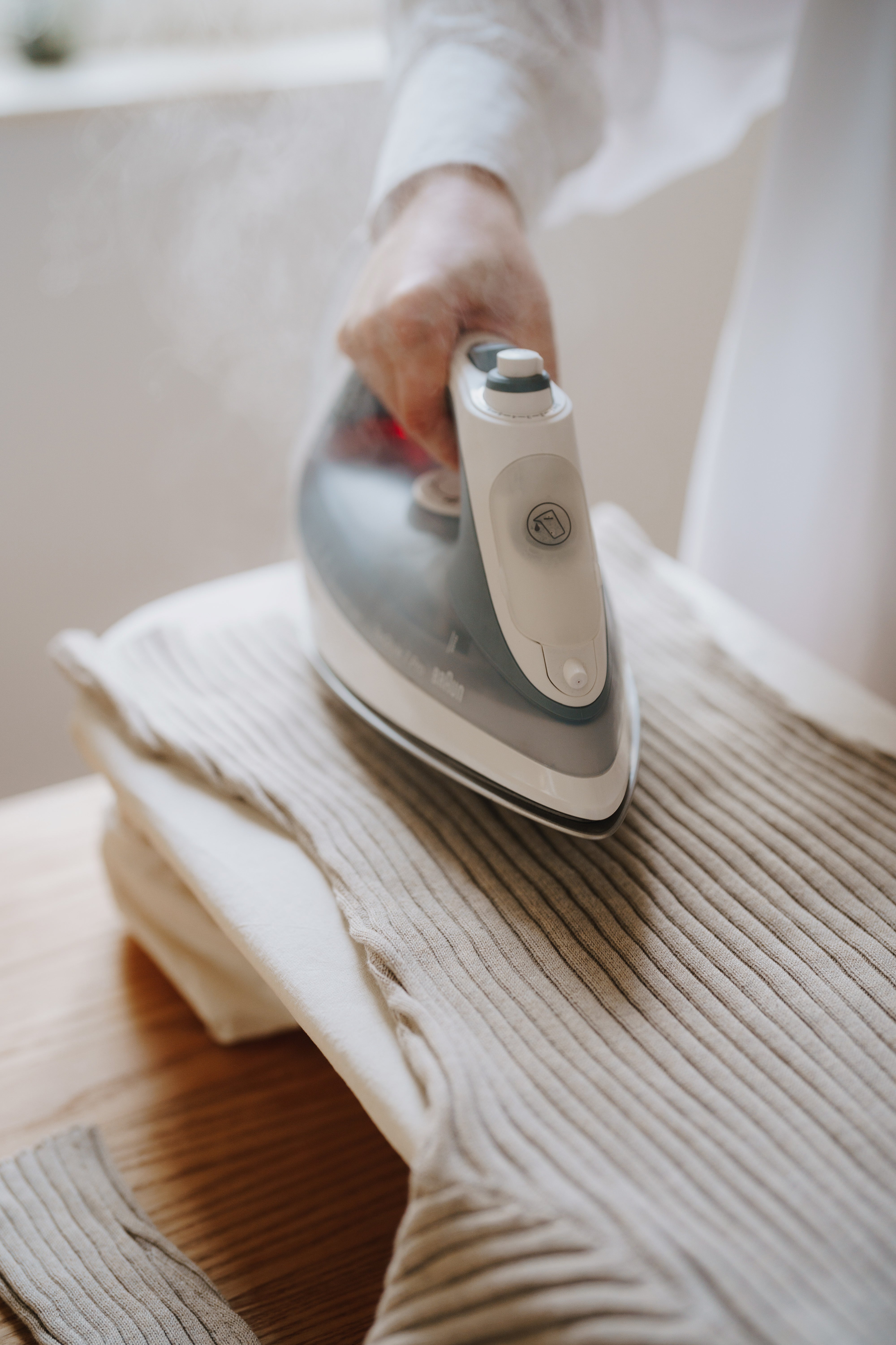 Wenn du deine Strickwaren bügeln möchtest, dreh sie vorher bitte auf links und stelle dein Bügeleisen auf eine niedrige Temperatur ein. Wenn du einen Steamer verwendest, glätte deine Strickteile bitte immer flach liegend – beispielsweise auf einem Bügelbrett oder Handtuch. So vermeidest du, dass die Maschen der Strickware unter dem Einfluss von Dampf und Schwerkraft nachgeben und ausleiern.