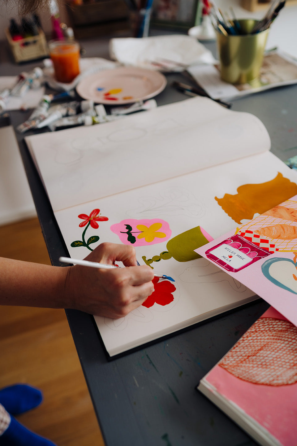Vielen Dank, dass ich ein Teil der MELA sein darf! Mein Atelier ist ein heiliger Ort, an dem ich jedes Mal, wenn ich an meinem Schreibtisch sitze, in eine unbekannte Welt eintauche.