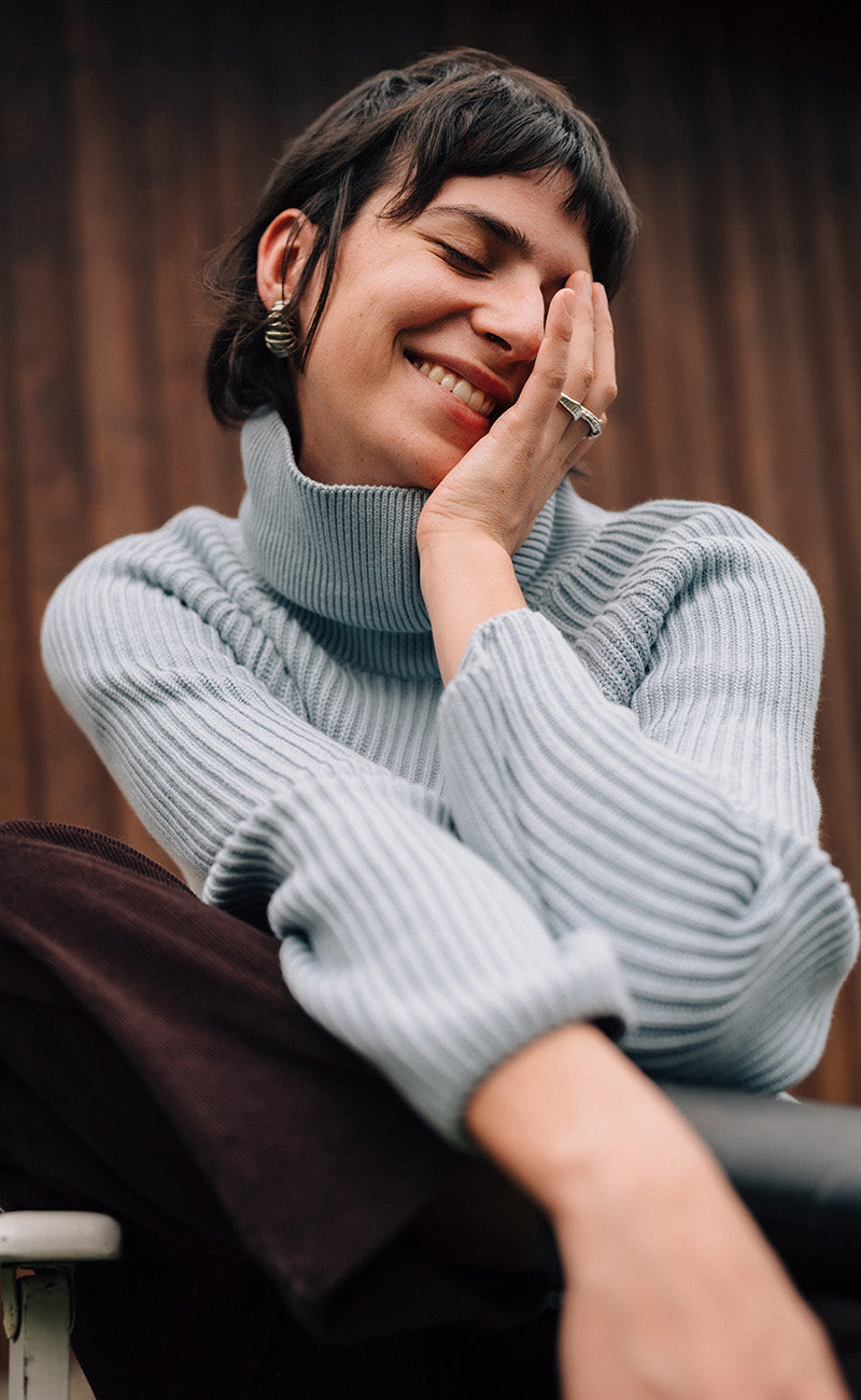 Aus Nachhaltigkeitsgründen verwenden wir kein Elasthan für Bündchen und Säume. Das bedeutet, dass sich dein Kleidungsstück während des Tragens an diesen Stellen weiten kann und sich nach dem Waschen wieder in die ursprüngliche Form zurückzieht.